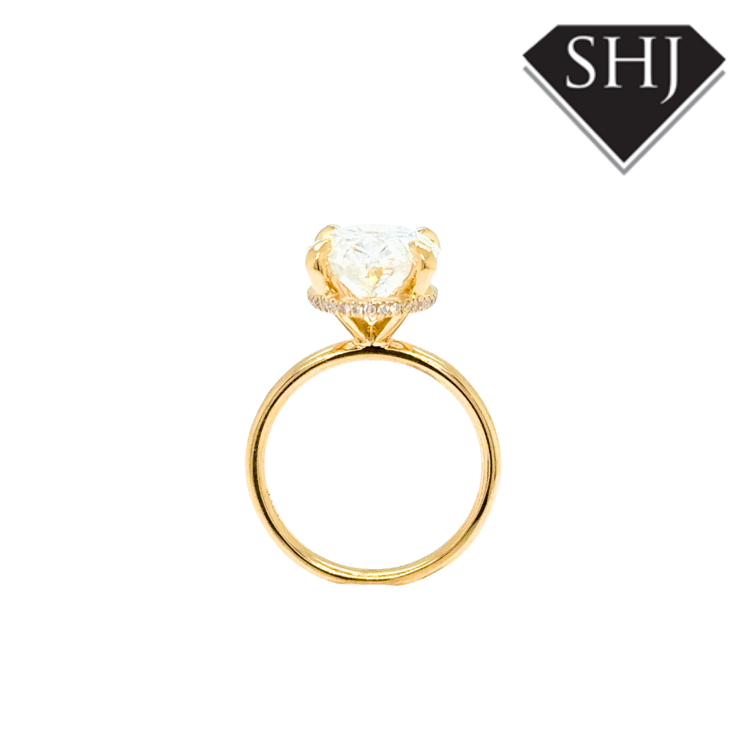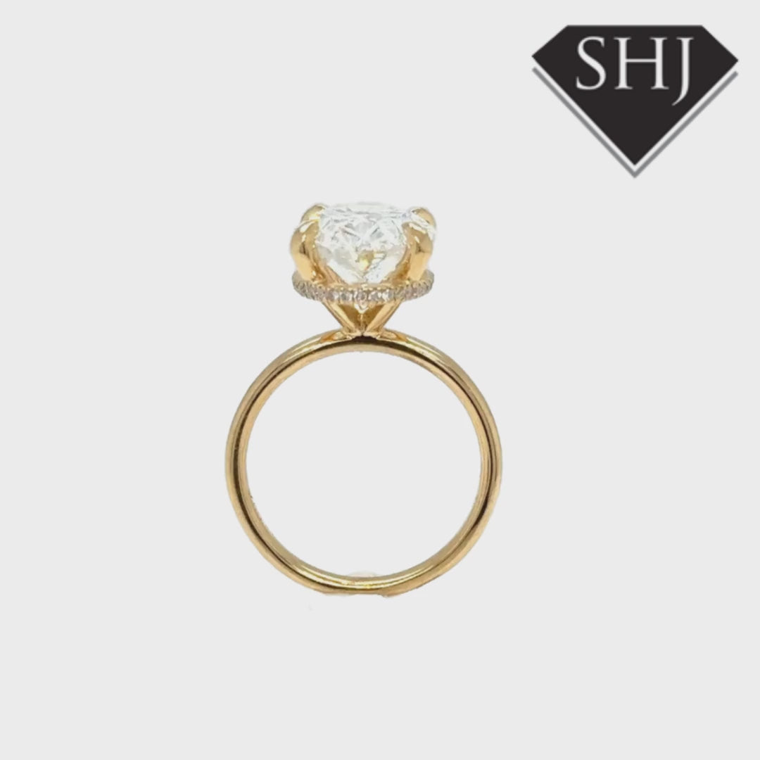 18ct Yellow Gold Lab Grown Oval 5.00ct Diamond Hidden Halo Ring E VVS2