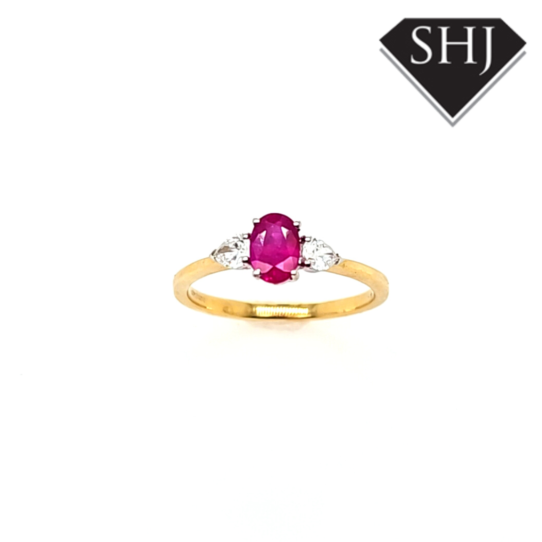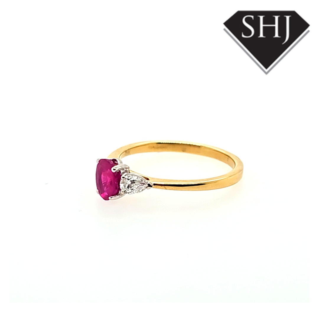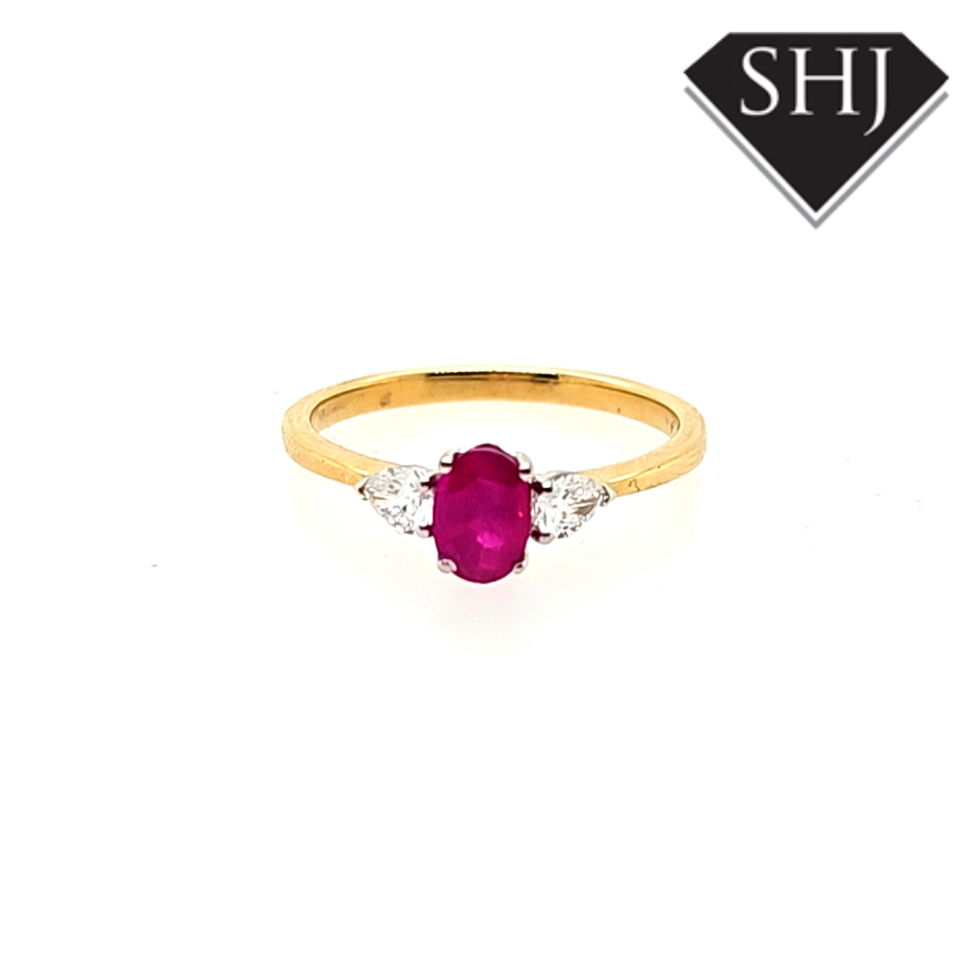 18ct Yellow Gold/White Gold Oval Ruby and Pear Diamond Ring