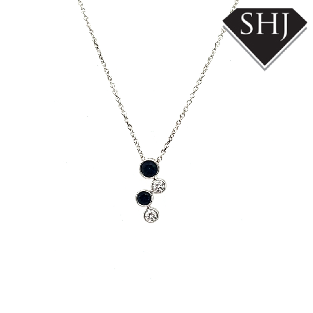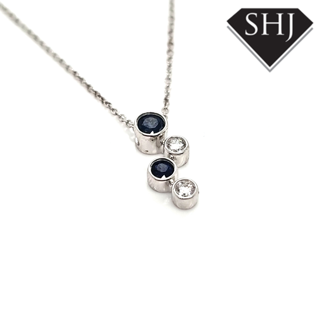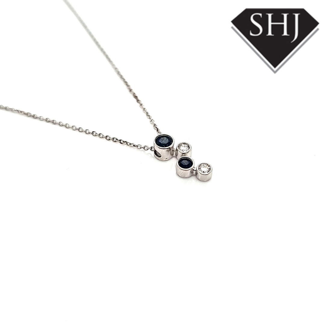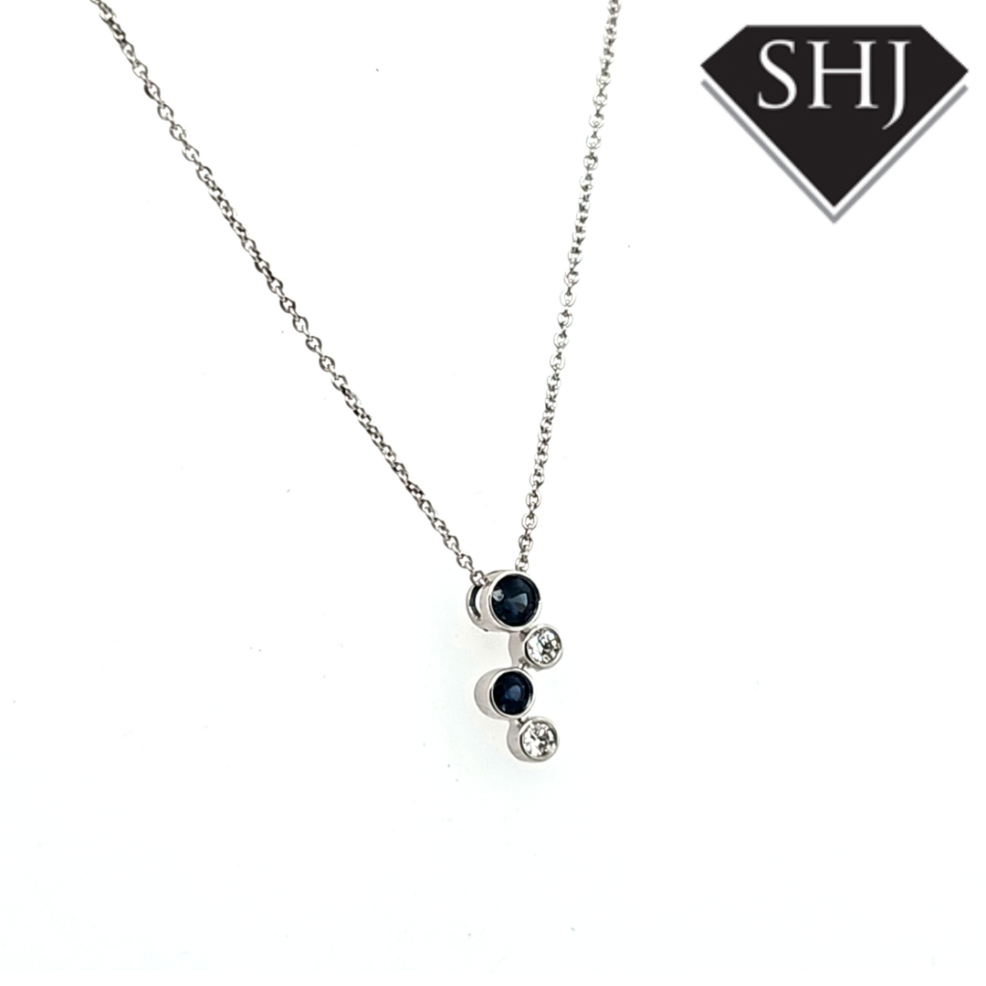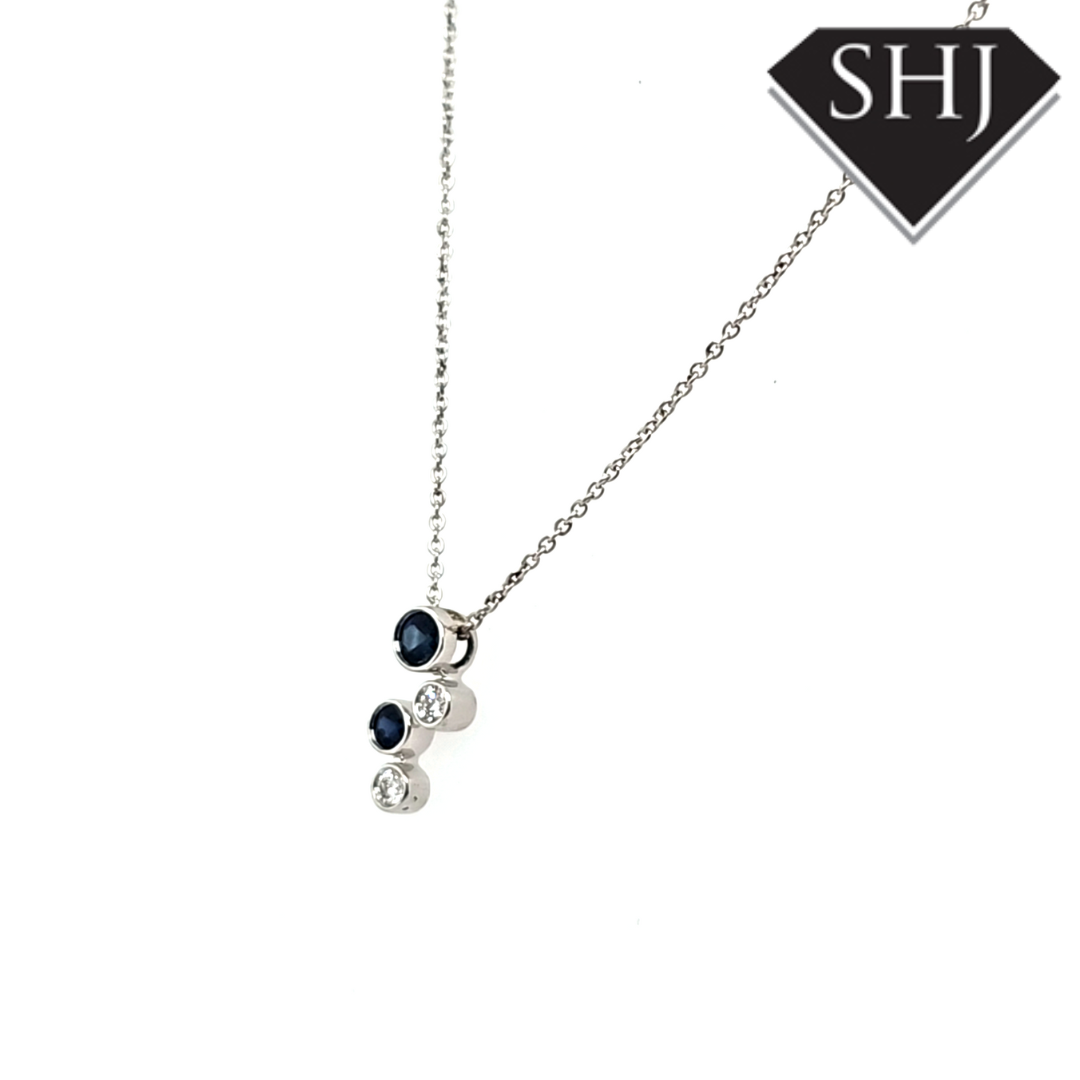 9ct White Gold 4 Stone Diamond and Sapphire Pendant 0.09ct