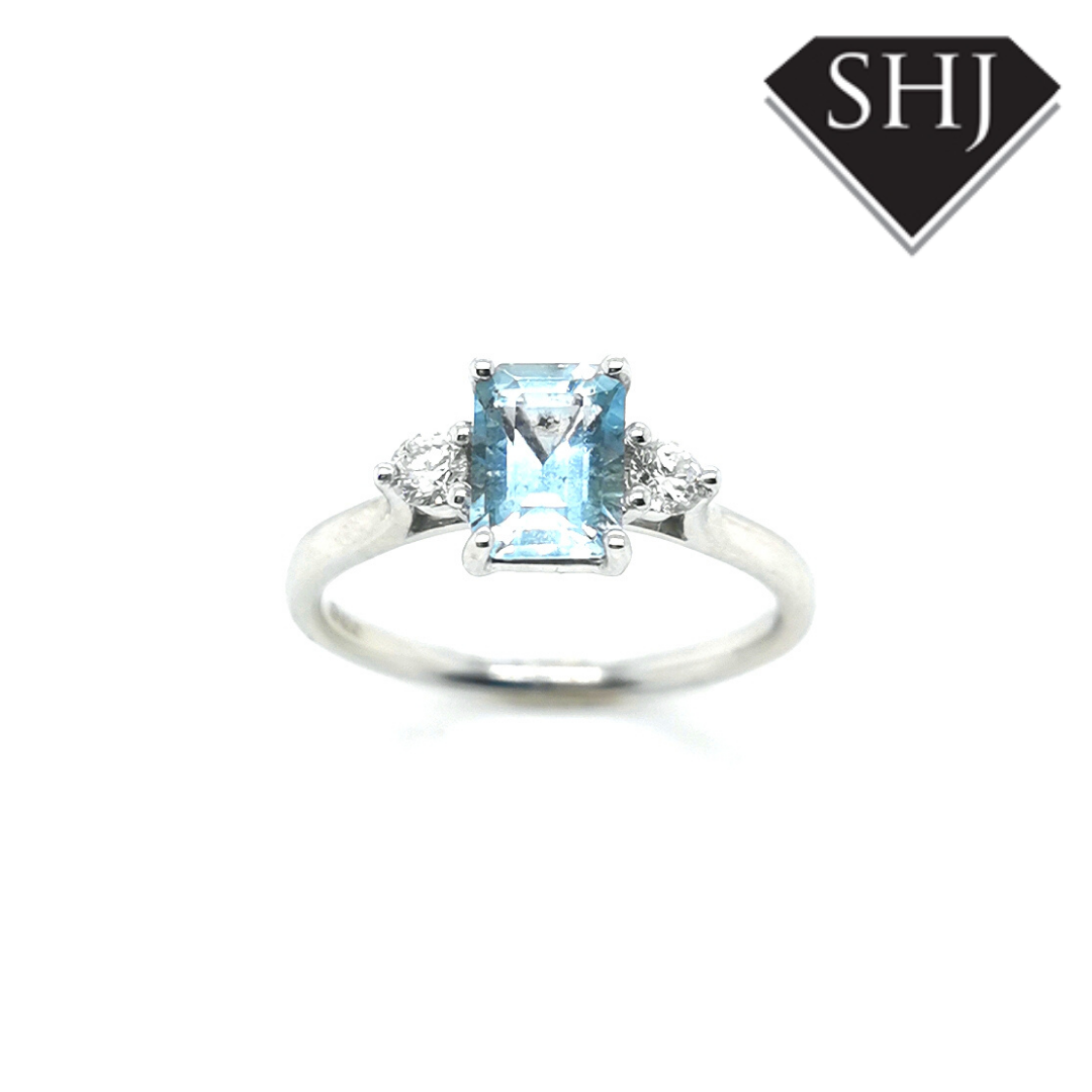 9ct White Gold Aqua and Diamond Ring 0.16ct