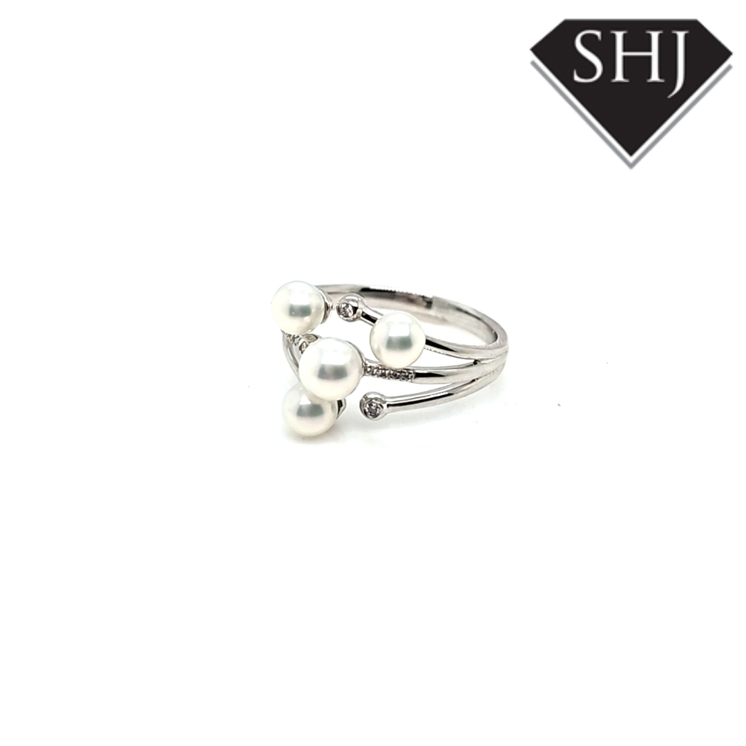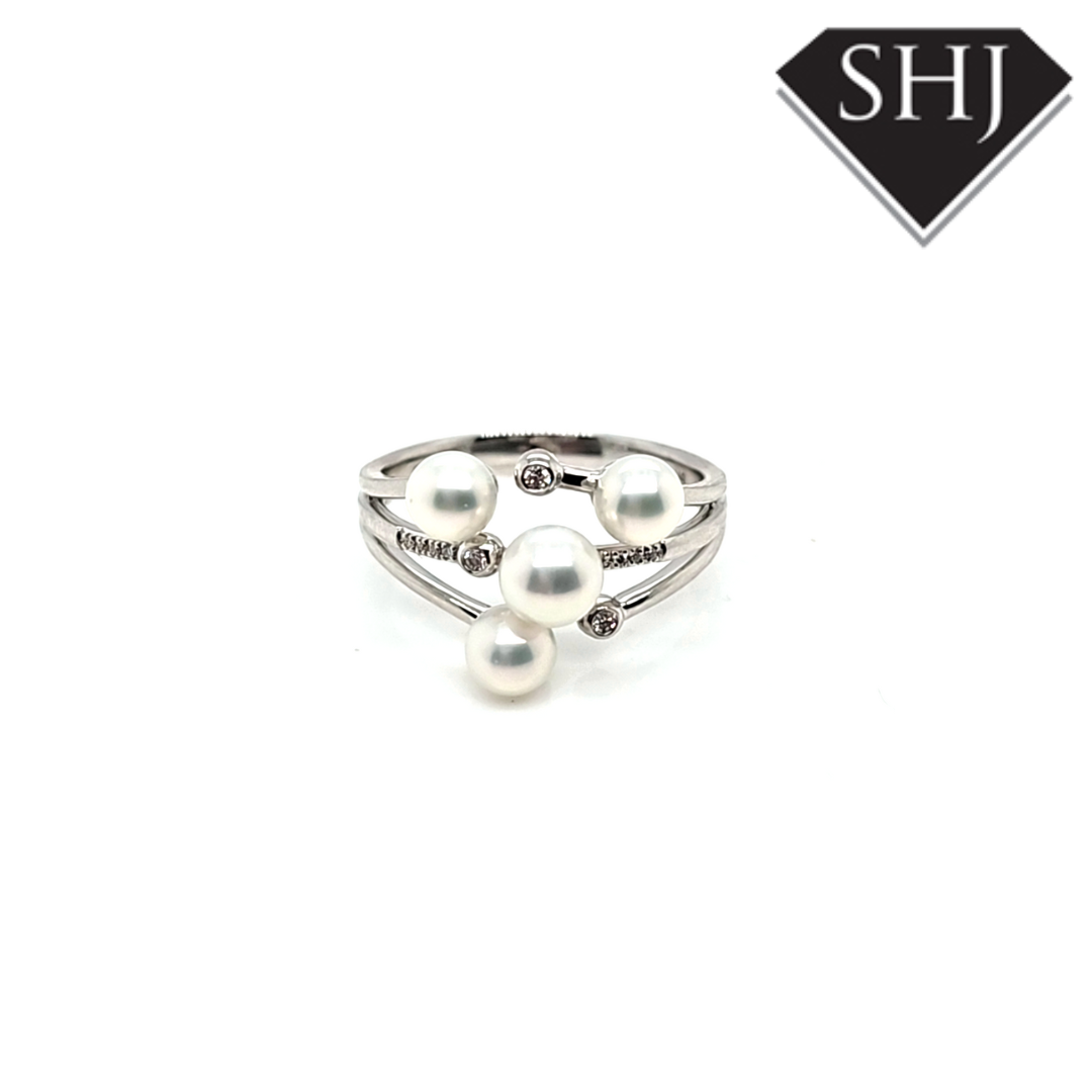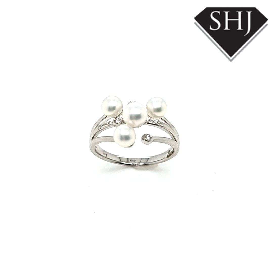 9ct White Gold Diamond and Pearl Ring 0.05ct