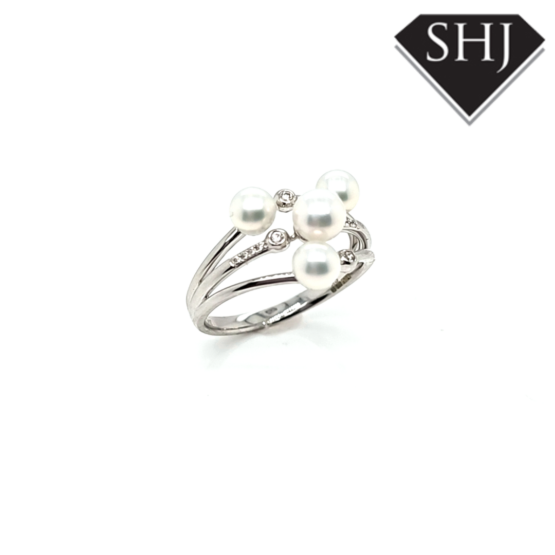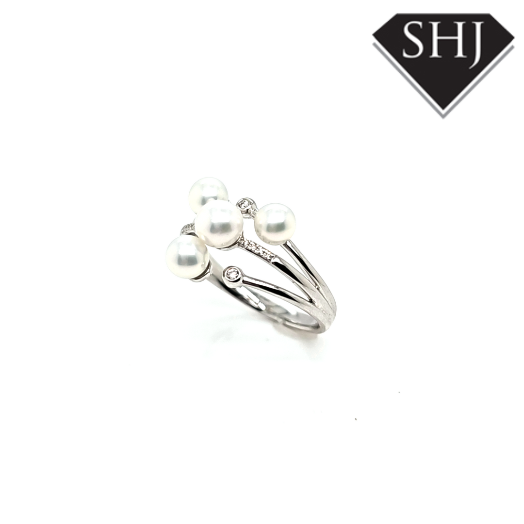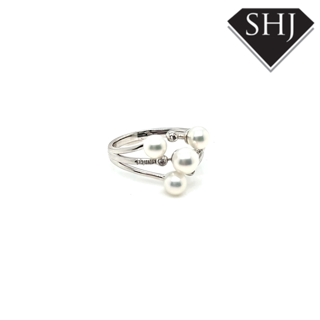 9ct White Gold Diamond and Pearl Ring 0.05ct