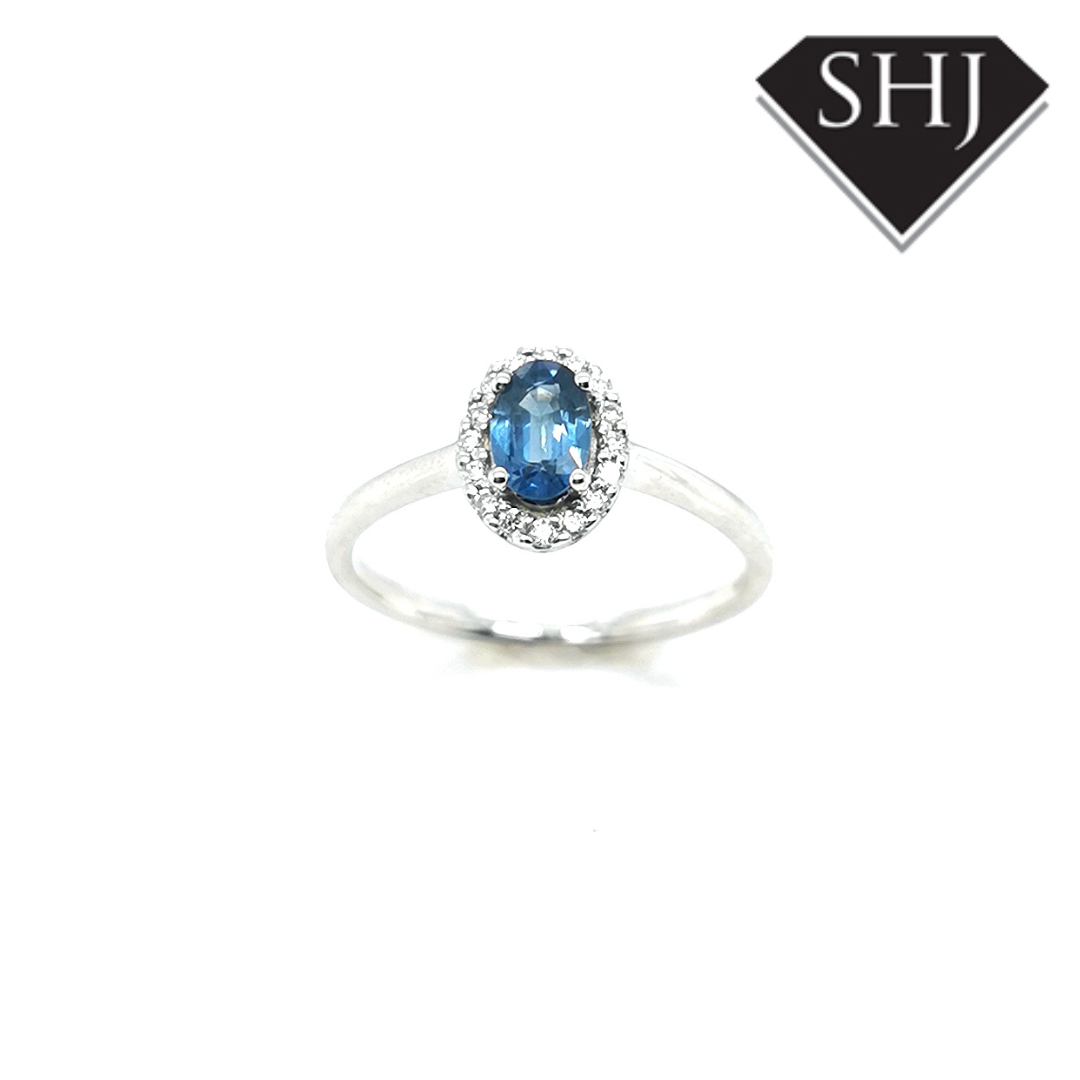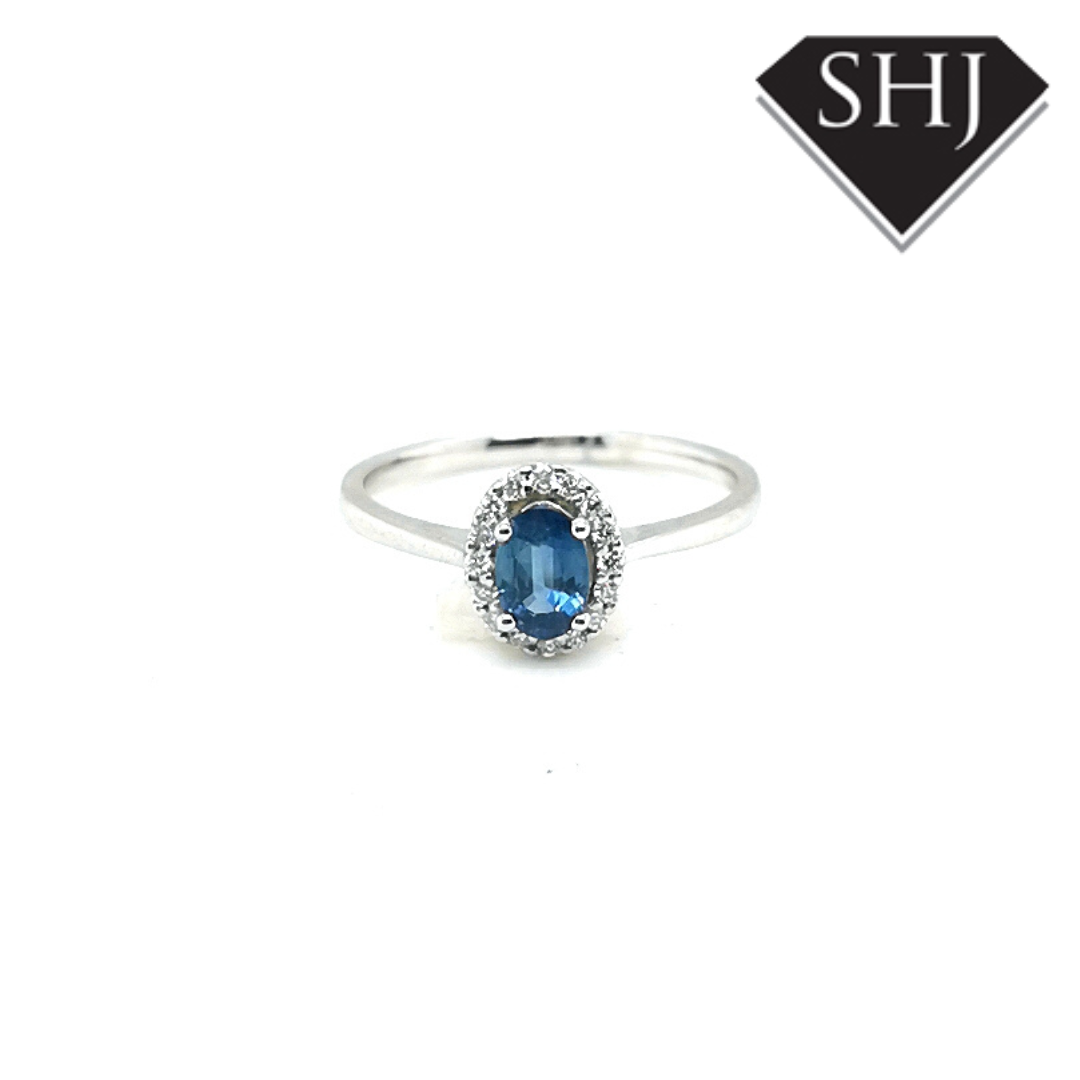 9ct White Gold Sapphire and Diamond Cluster Ring
