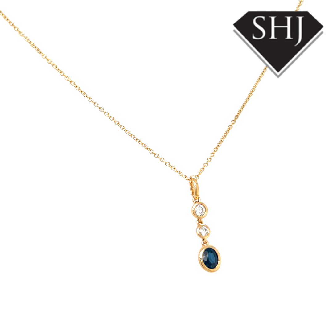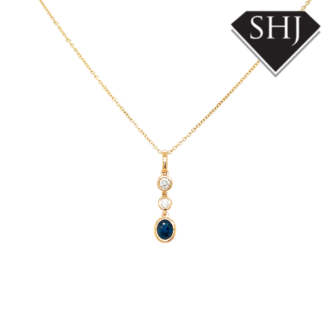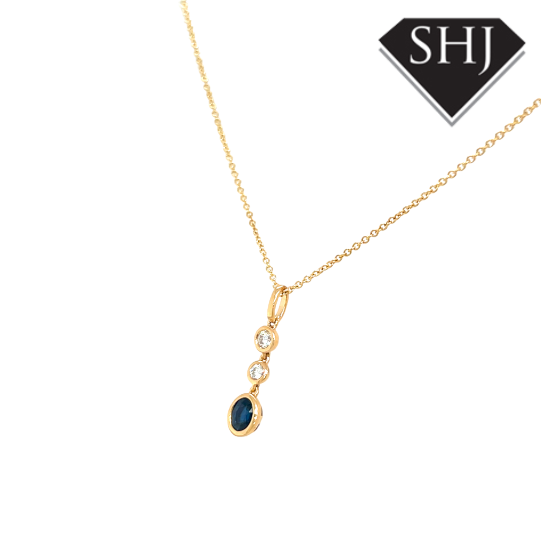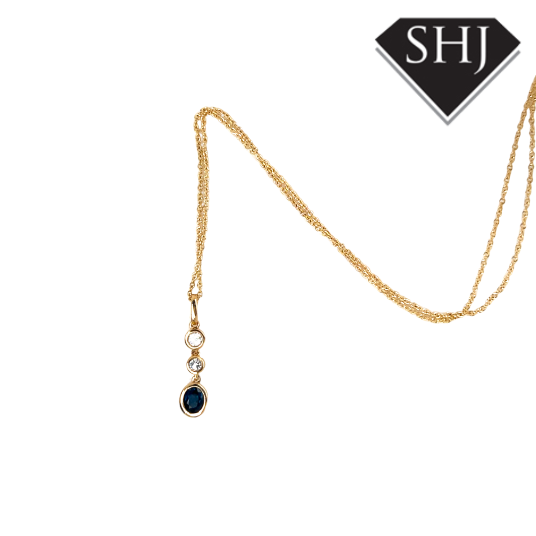 9ct Yelllow 0.14ct Gold Diamond and Sapphire Pendant