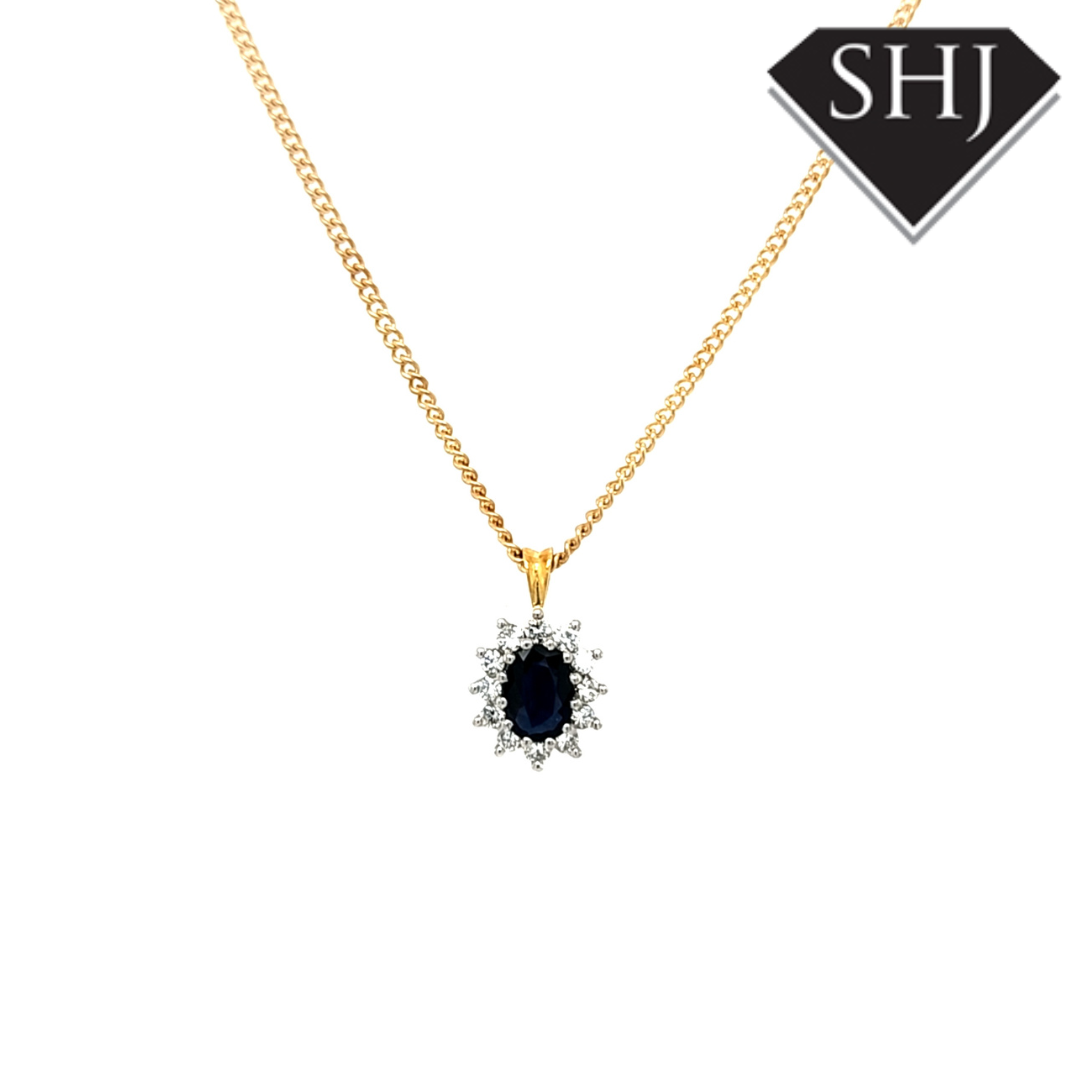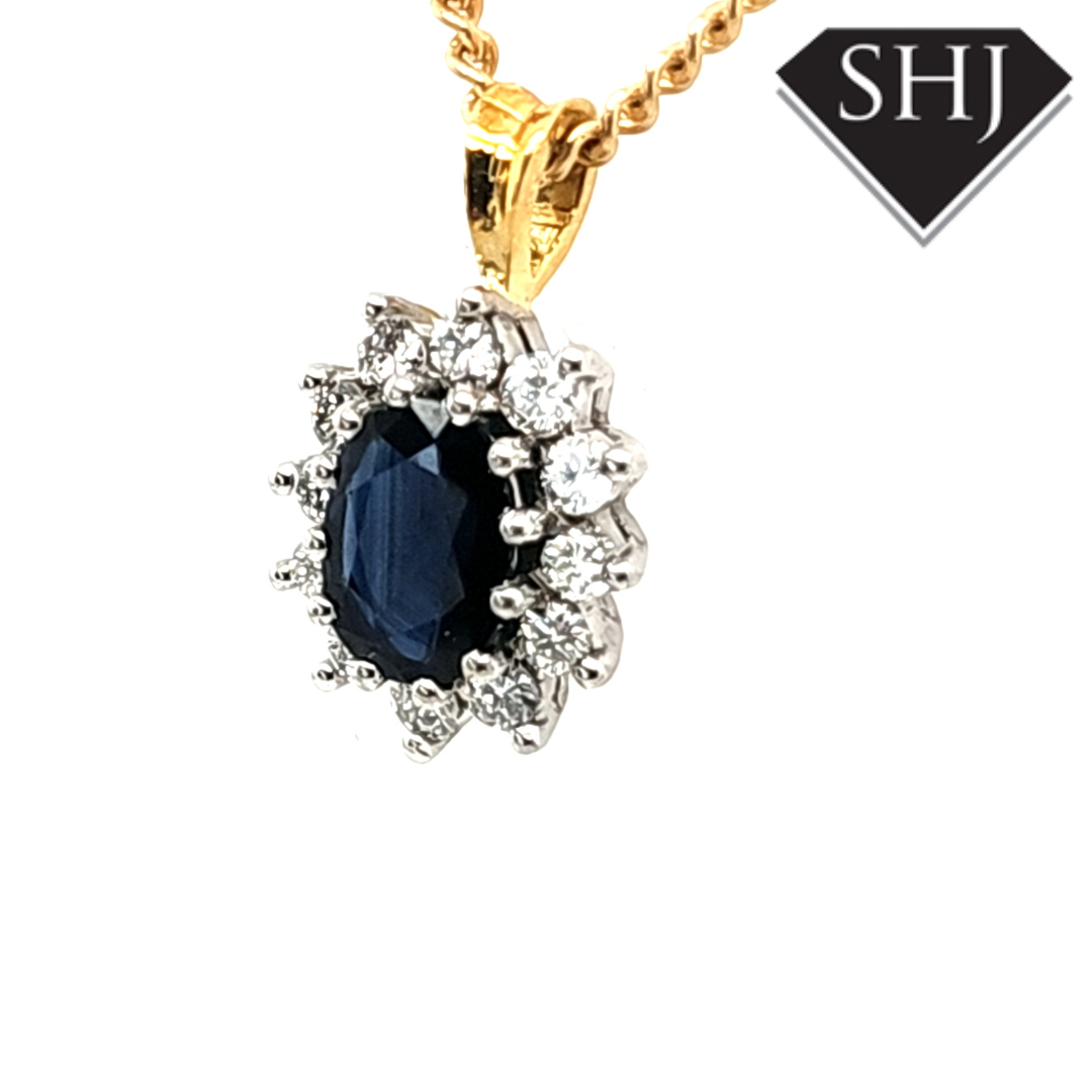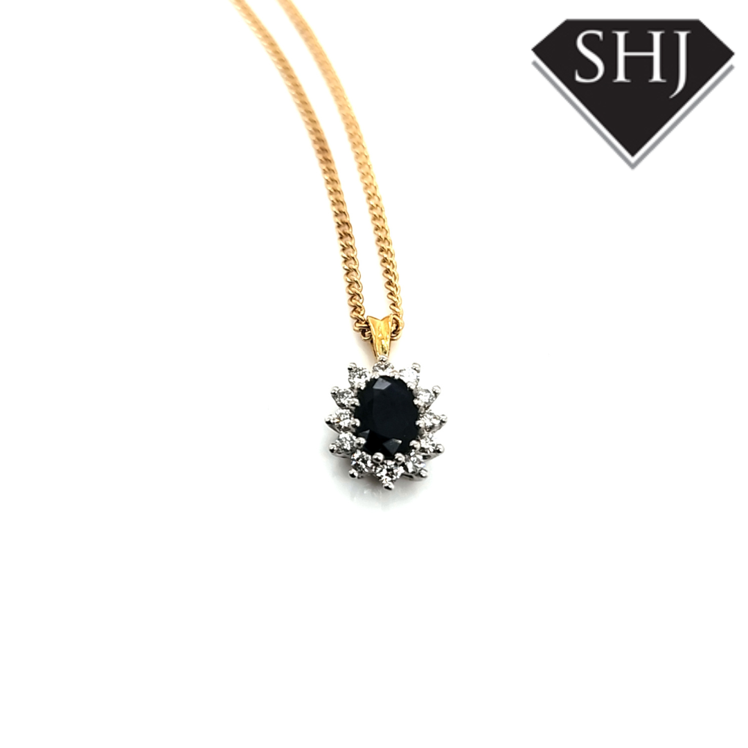 9ct Yellow Gold Diamond & Sapphire Pendant NRV £1500