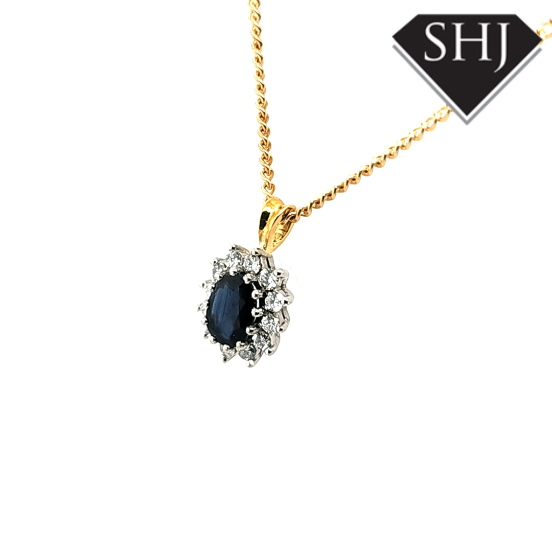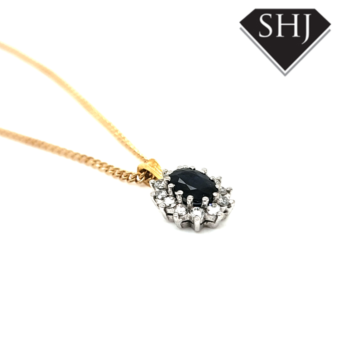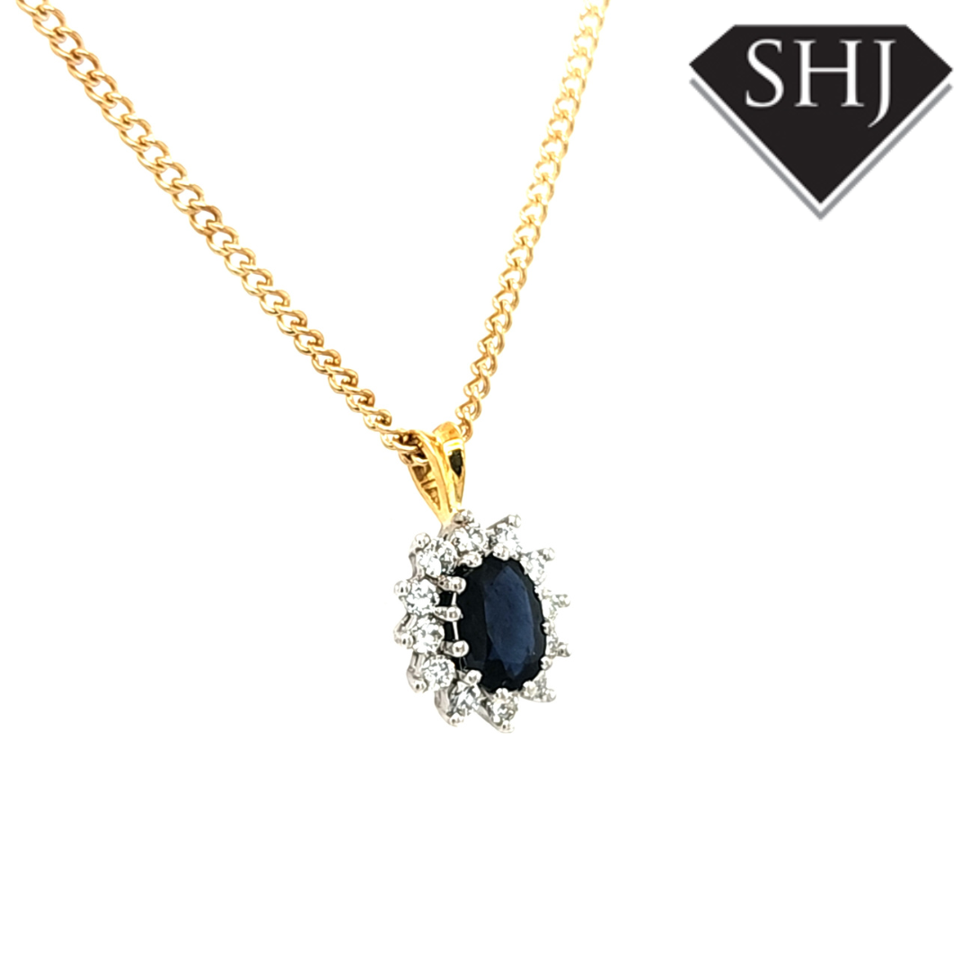 9ct Yellow Gold Diamond & Sapphire Pendant NRV £1500