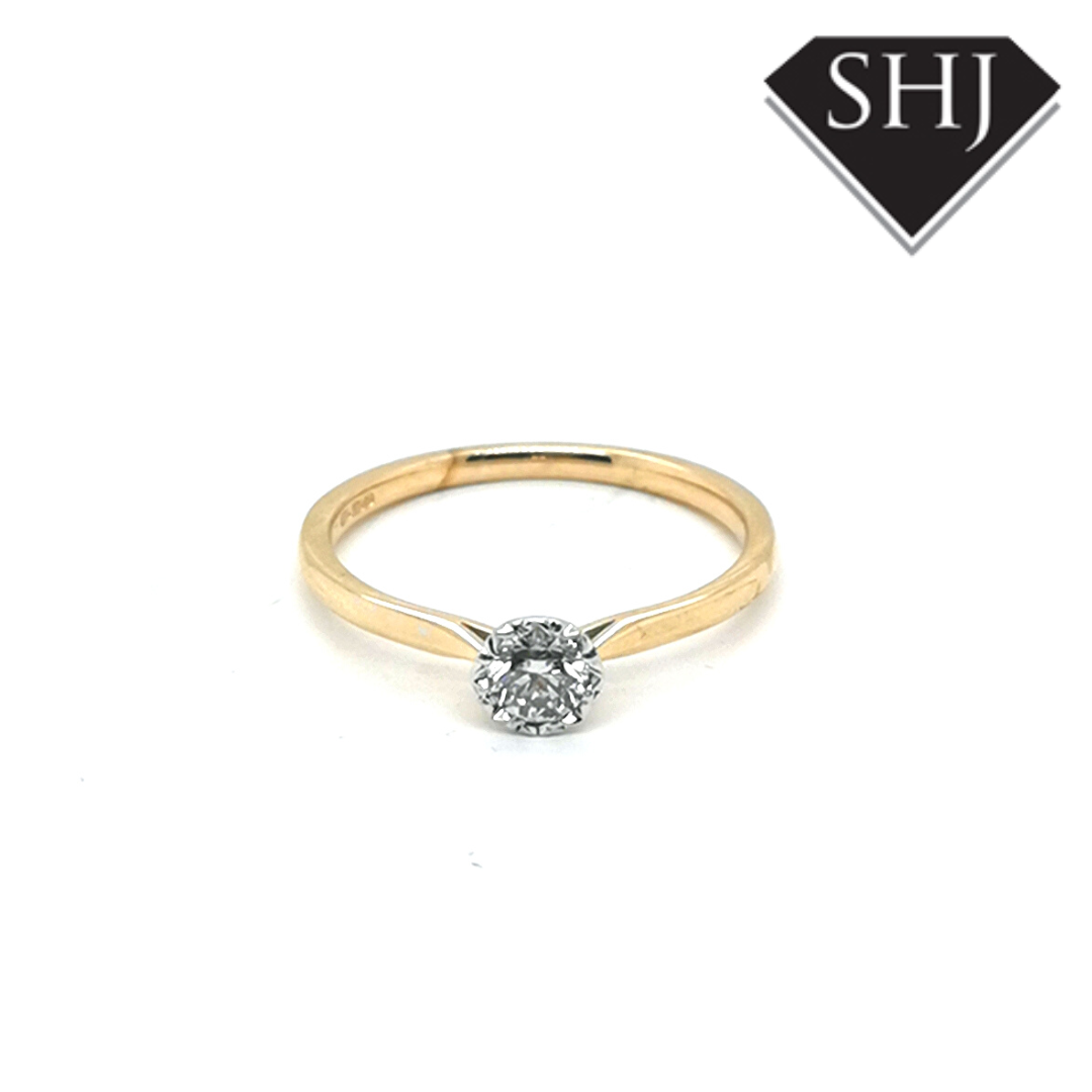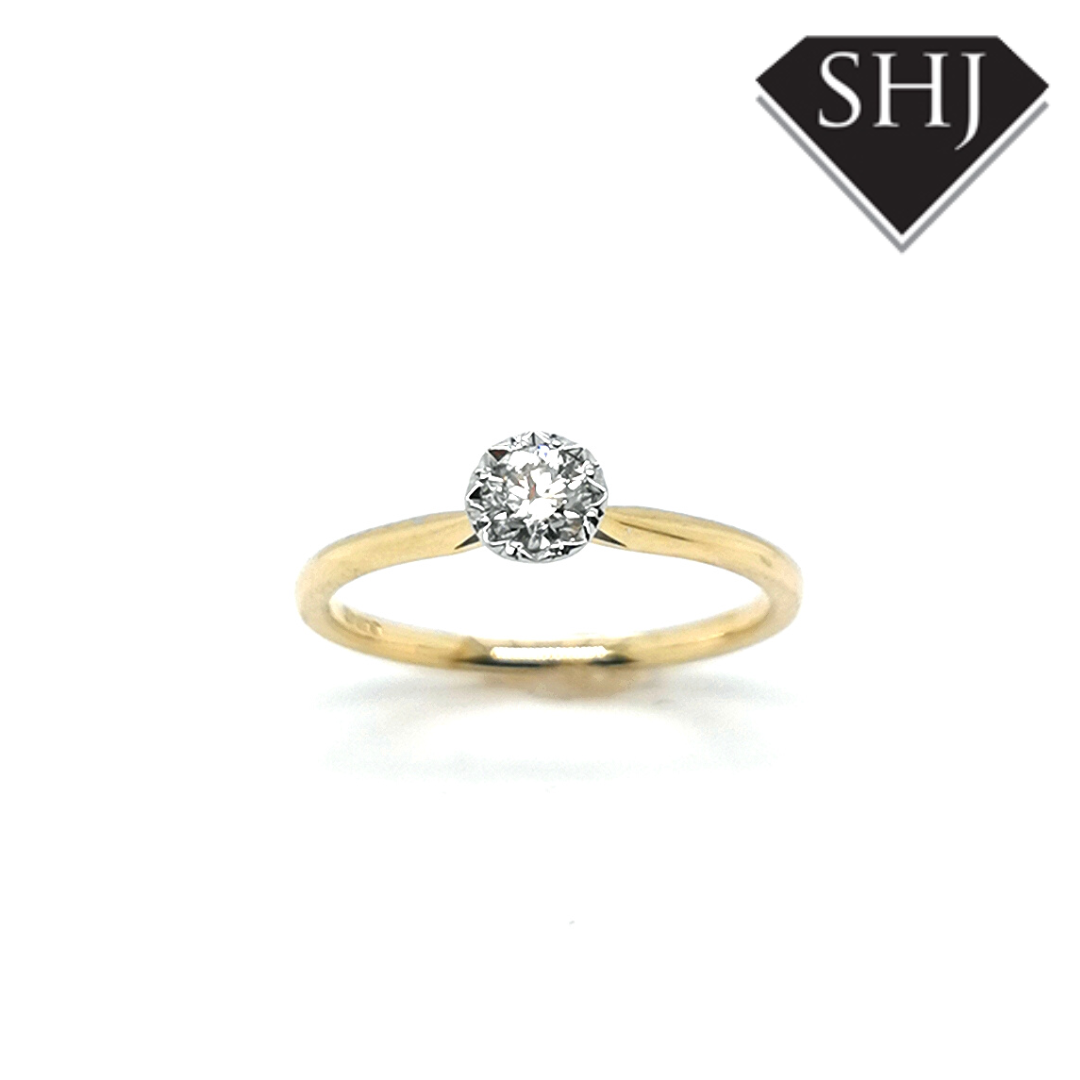 9ct Yellow Gold/White Gold Diamond Single Stone Ring 0.25ct