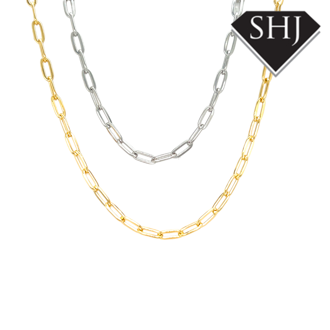 Gold Plated Silver 18" Paperclip Chain. Also available in silver.