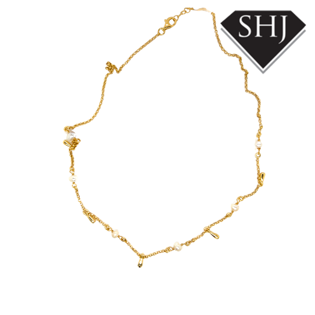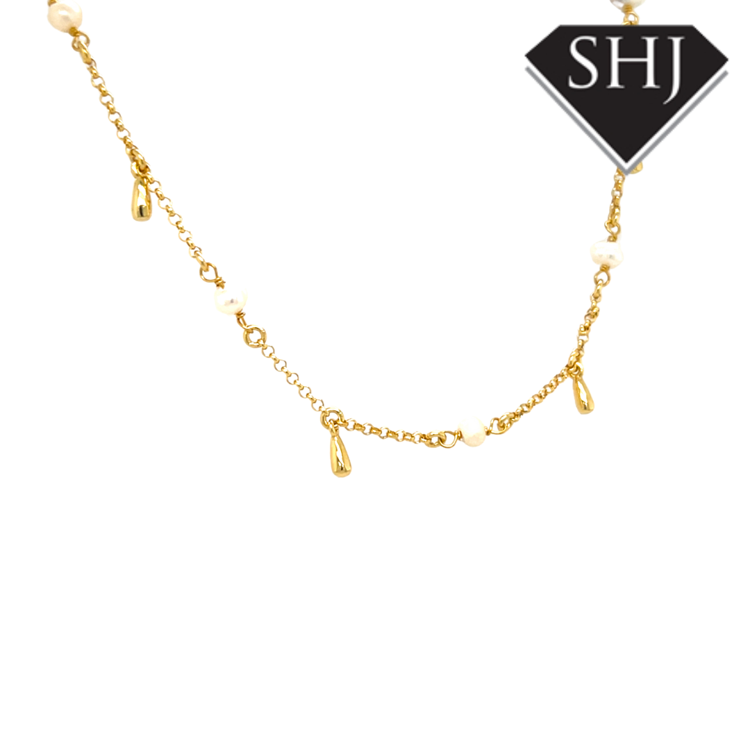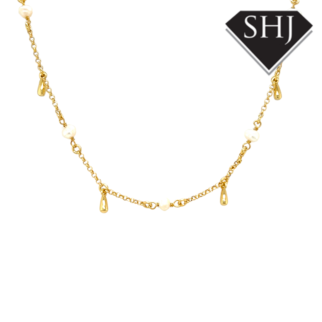 Gold Plated Silver Pearl Station Necklace