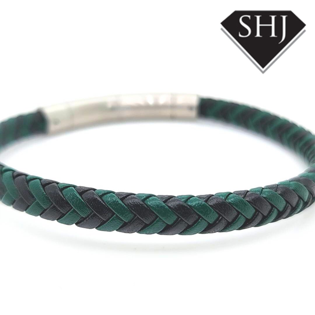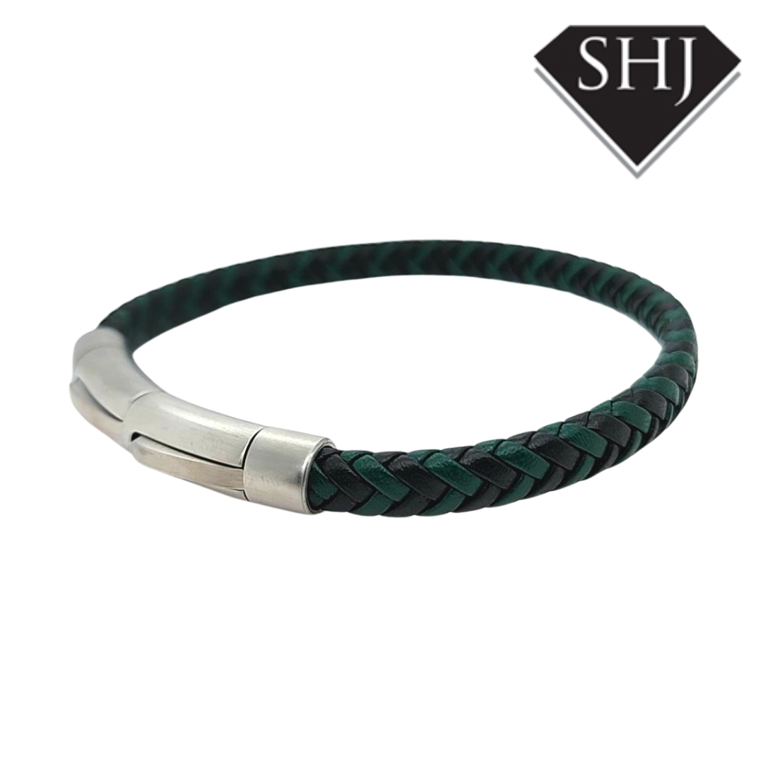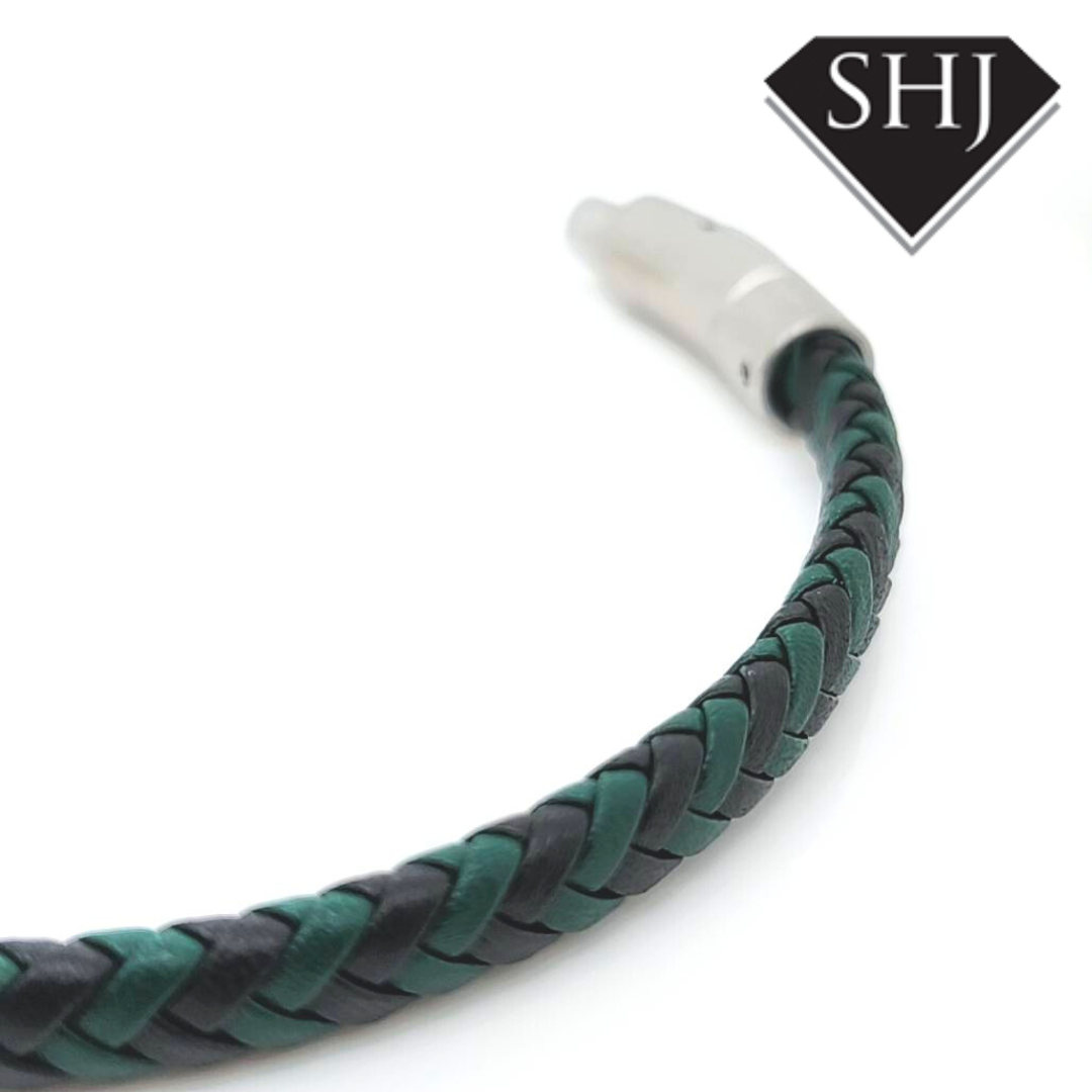Green & Black Leather Bracelet