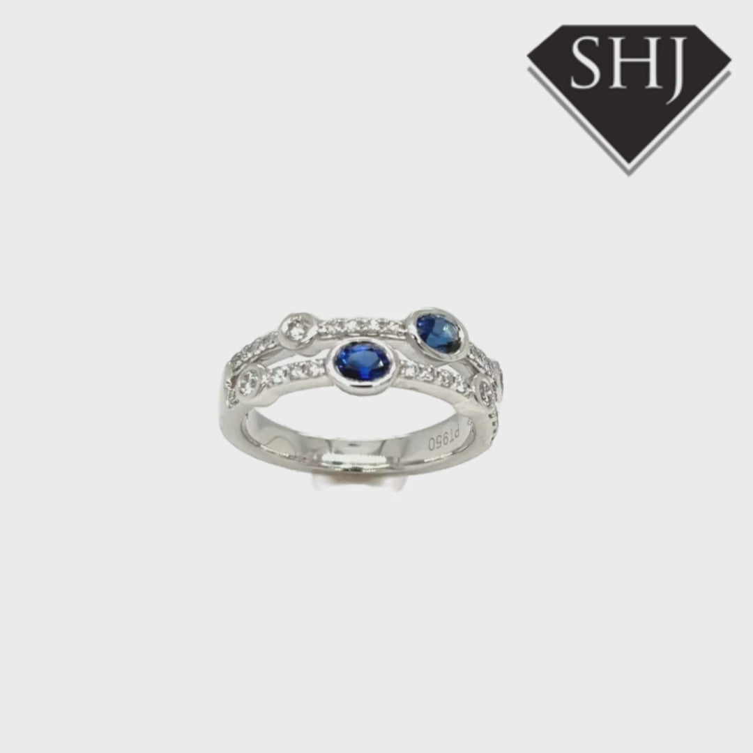 Platinum 0.45ct Sapphire 0.35ct Diamond H SI Double Bubble Ring Size M