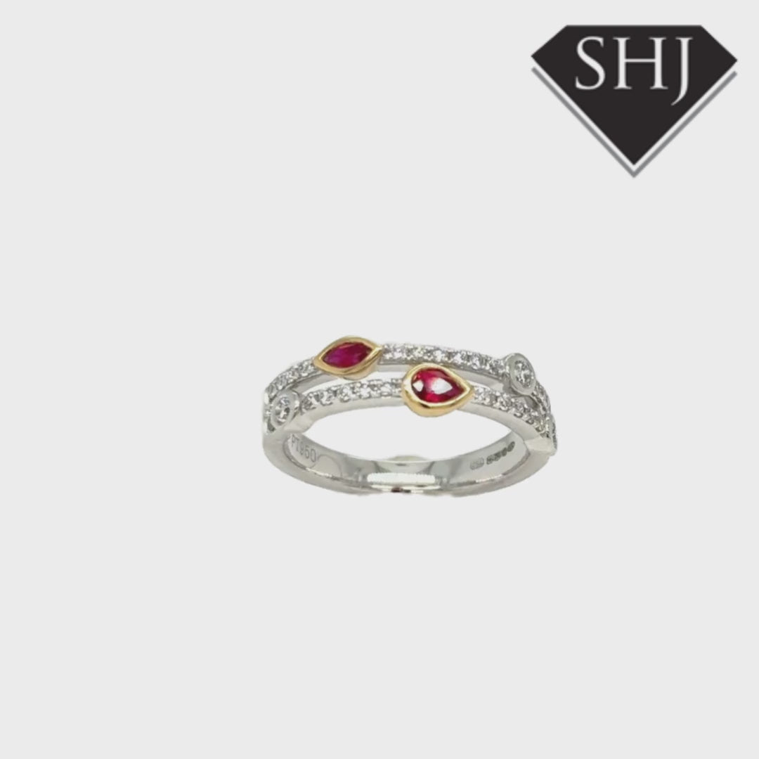Platinum & 18ct Yellow Gold 0.24ct Ruby & 0.33ct Diamond H SI Double Bubble Ring Size N