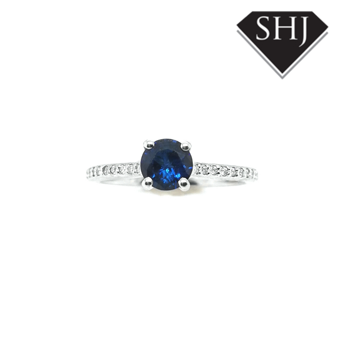 Platinum Sapphire Single Stone with Diamond Set Ring