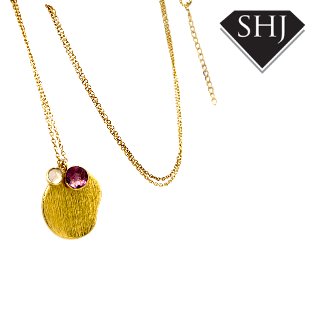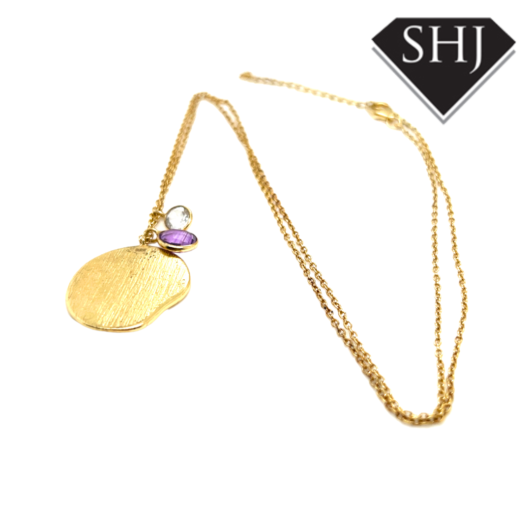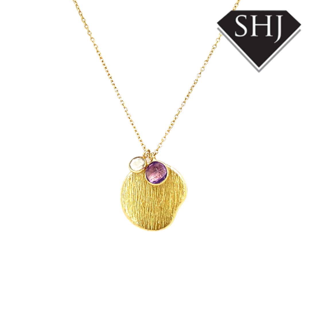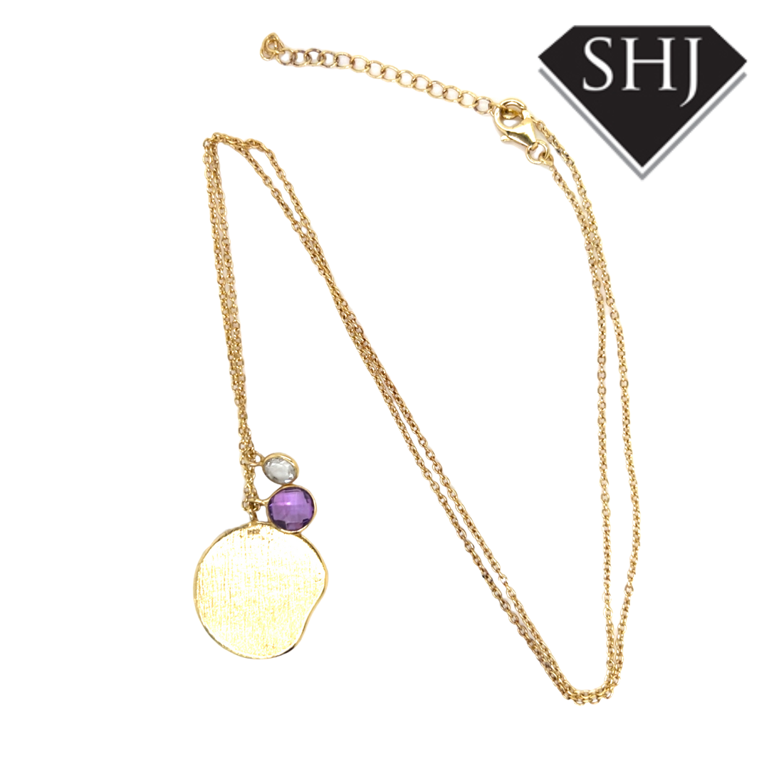 Silver Gold Plated Amethyst and CZ Necklace