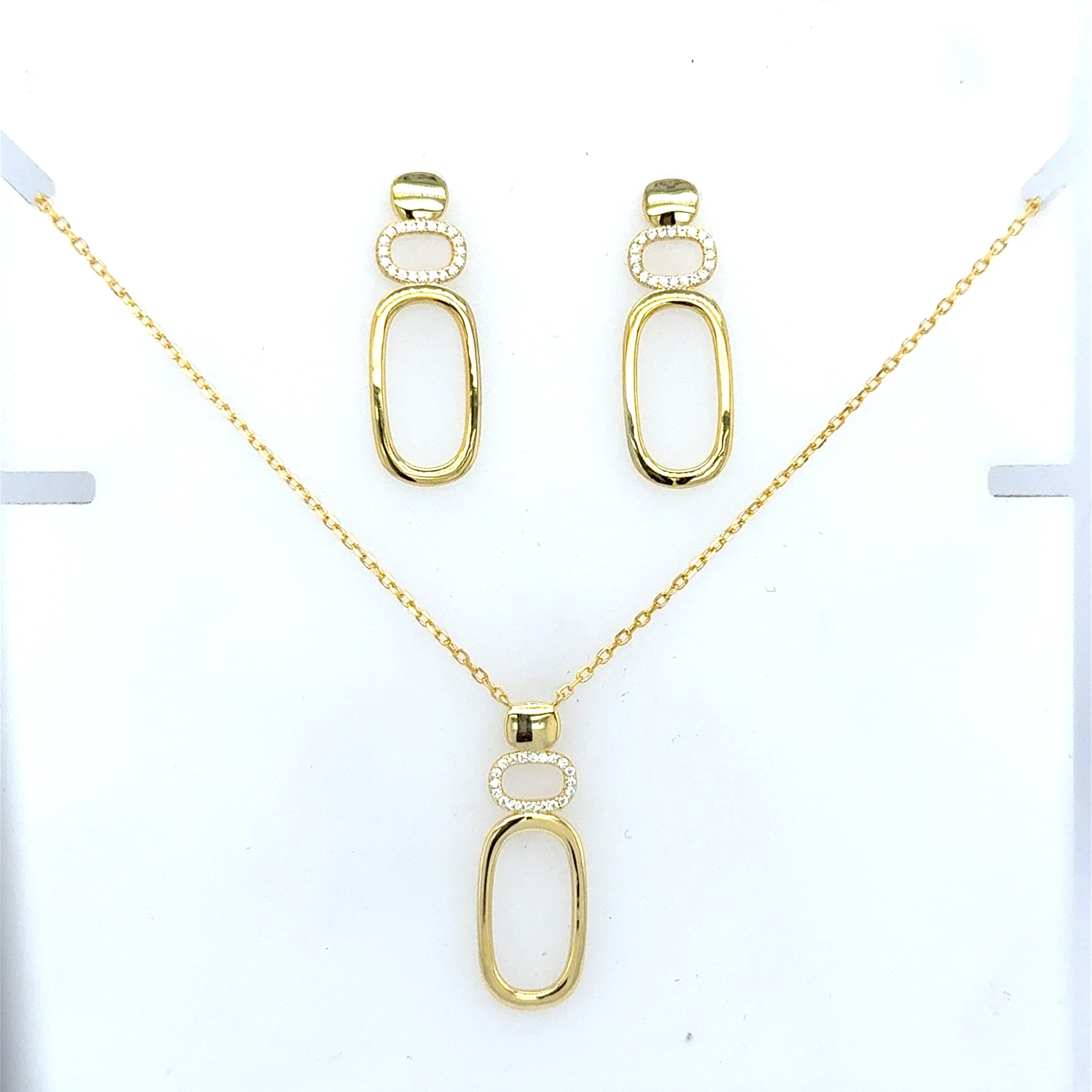 Silver Gold Plated Oval CZ Earrings. Matching necklace available. Also available in silver.